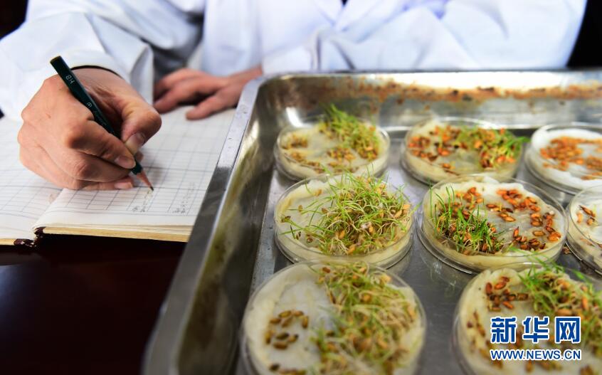 圖為遼寧省農(nóng)科院水稻研究所呂桂蘭正在做播種前種子發(fā)芽實(shí)驗(yàn)記錄。新華網(wǎng)姜冰 攝