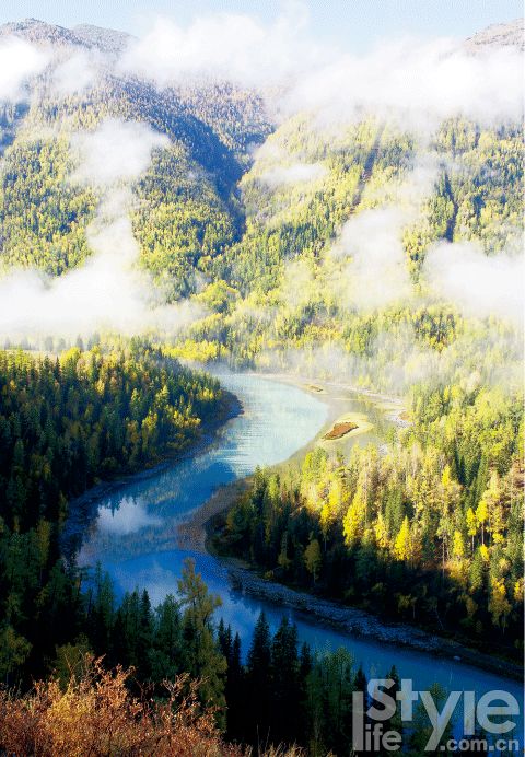 第一天到達喀納斯,天空飄著淅淅瀝瀝的小雨,山上的白樺林水洗過后色彩更加艷麗逼人,只是天空的灰暗不免有點遺憾。但很快第二天早上,我們就開始感謝頭一天的小雨了,陽光出來后,蒸汽升騰著,坐落在山腳下的圖佤族小木屋掩映在霧氣中若隱若現(xiàn),我們在盤山公路上行進,下面就是這人間仙境,所有人都激動萬分,就連常年生活在這里的當(dāng)?shù)厝硕既滩蛔√统鍪謾C拍照。而越往上走,風(fēng)景越美,藍天白云里圣潔的雪山像嬌羞的美女撥云見日,姿態(tài)萬千。右邊的喀納斯湖盡收眼底,碧綠的湖水,溫潤如玉。難怪元代成吉思汗的軍帥耶律楚材遠征途經(jīng)喀納斯湖時,也被這壯麗的景色深深打動,吟詩道:“誰知西域逢佳景,始信東君不世情。圓沼方池三百所,澄澄春水一池平!笨{斯的美麗是無以言表的,除非親自來看,僅憑圖片影像,相信再高級的相機都無法表達這美景的十分之一。