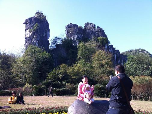 桂林七星景區(qū)的駱駝山前,人們悠然的盡享安逸陽(yáng)光。