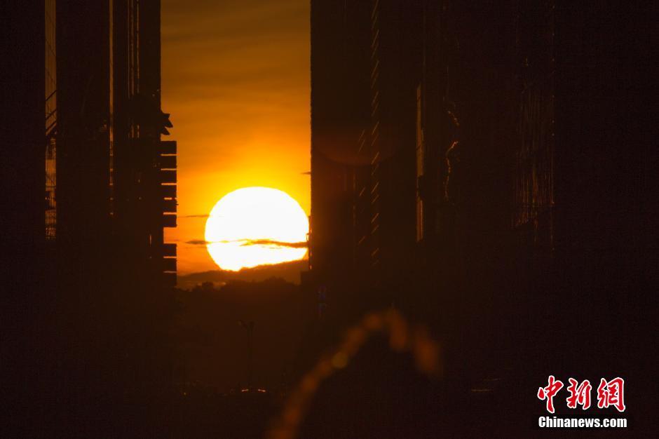 當(dāng)?shù)貢r(shí)間7月11日傍晚,在美國(guó)紐約曼哈頓,大批民眾聚集拍攝“曼哈頓懸日”景觀。曼哈頓懸日是指在美國(guó)紐約曼哈頓出現(xiàn)的自然現(xiàn)象,由于曼哈頓街道大多呈棋盤式布局且高樓密集,日落時(shí)陽光灑滿曼哈頓的所有東西向街道,該現(xiàn)象每年只出現(xiàn)兩次!