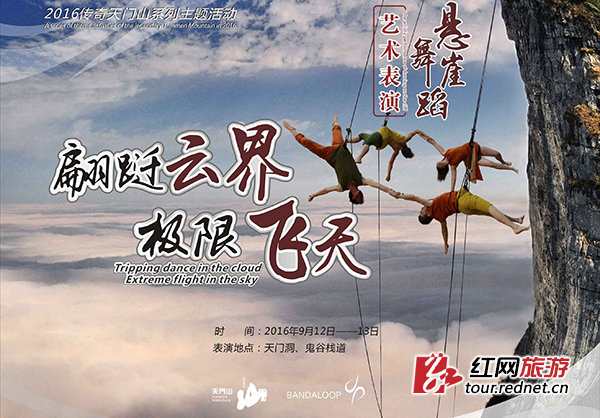 本次在天門山的表演,是美國BANDALOOP高空舞團在國內自然巖壁的舞蹈首秀,以“翩躚云界,極限飛天”為藝術主題,以優(yōu)雅而又驚險的舞姿,通過與鬼斧神工般自然奇景的互動,闡述舞蹈與自然的關系,使舞蹈藝術盛放云端。表達人類與神奇大自然和諧融合的重新想象,也表達人類對天地造化的崇敬之情。