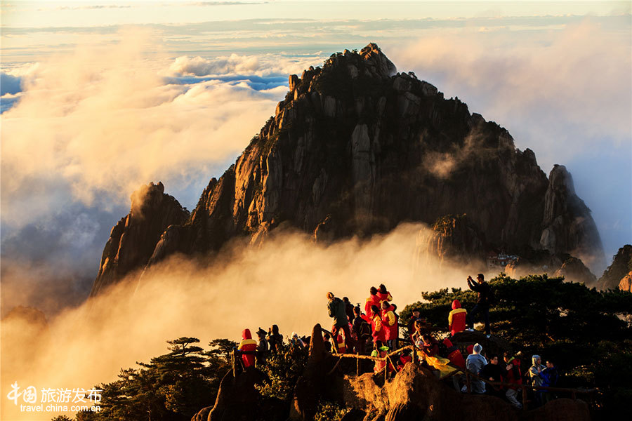 經(jīng)過今年14號(hào)強(qiáng)臺(tái)風(fēng)“莫蘭蒂”的洗禮,黃山風(fēng)景區(qū)空氣格外清新,能見度特別好。9月17日的光明頂和煉丹峰觀景臺(tái)一大早就人山人海。翻騰的云浪、絢麗的日出和絕妙的彩虹輪番上演,驚呆了場(chǎng)游客,他們?cè)谫潎@的同時(shí),不停地按動(dòng)著相機(jī)快門,留住最美的一刻。
