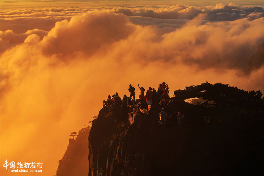 中國(guó)網(wǎng)9月17日訊 9月17日,成百上千名游眾在黃山風(fēng)景區(qū)光明頂觀賞云海、日出和彩虹美景。當(dāng)天早上,在朝霞的映照下,云海中的白色云團(tuán)、云層和云浪都染上絢麗的色彩,像錦緞、像花海、像流脂,與奇松、怪石和秋色相映成輝,眼前的黃山猶如國(guó)畫大師李可染筆下的《黃山煙霞》圖。