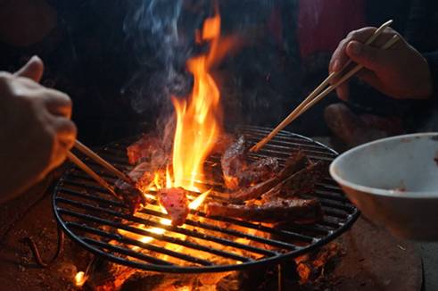 烤腌魚(yú),最原始的“篦上”烤肉,辣椒為蘸料,來(lái)一口米酒,驅(qū)走體內(nèi)的濕氣
