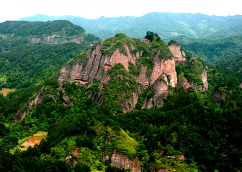 她位于湖南湘西通道縣城東北部。不是很高,也不是很陡峭,她的獨(dú)特之處就是在于,頭上頂綠帽子,上身穿紅裙子,下身套著花褲子,腳上踩著綠鞋子。她是我國(guó)乃至世界范圍內(nèi)發(fā)現(xiàn)的品相較為罕見(jiàn)的特大型丹霞地貌群。