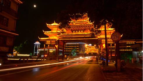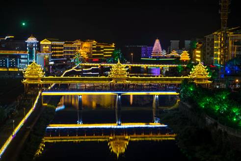 邂逅于白天的吃吃喝喝,玩玩鬧鬧。夜晚來(lái)臨,靜下來(lái),觀賞通道的夜景——一江穿九橋。