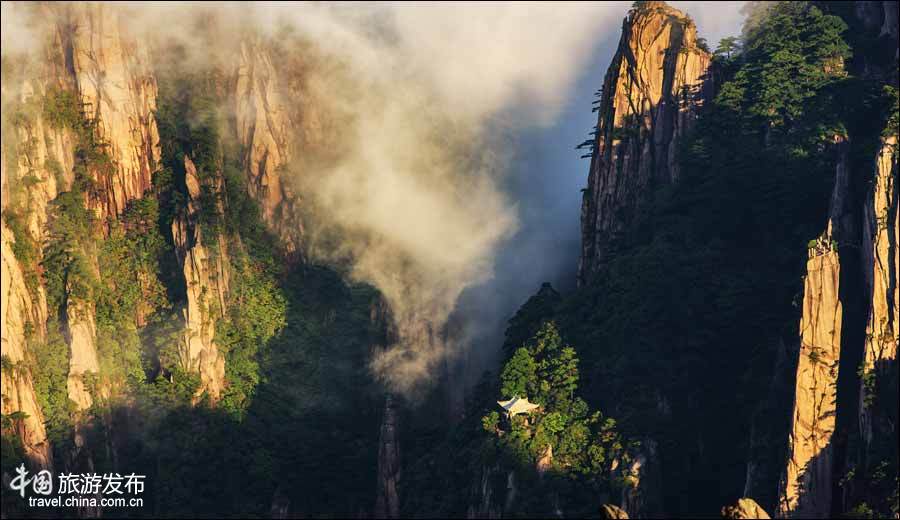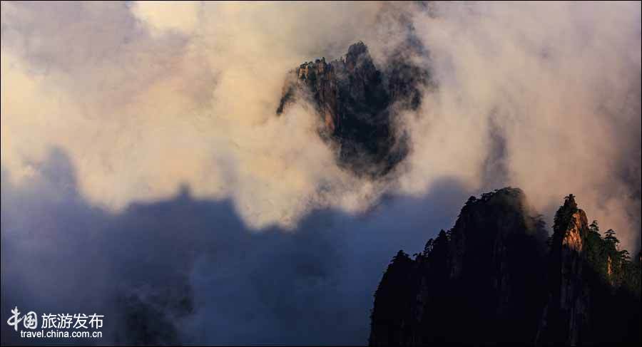 “莫蘭蒂”臺(tái)風(fēng)之后,黃山西海大峽谷風(fēng)起云涌,云霧忽兒滾滾滔滔,忽兒虛無(wú)縹緲,忽兒薄紗遮蒙,忽兒氣朗風(fēng)清,薄幕流云籠罩秀美的峰、石、松若隱若現(xiàn)。步入谷中,其險(xiǎn)奇、峻秀集于一身,詩(shī)詞歌賦難以言表。