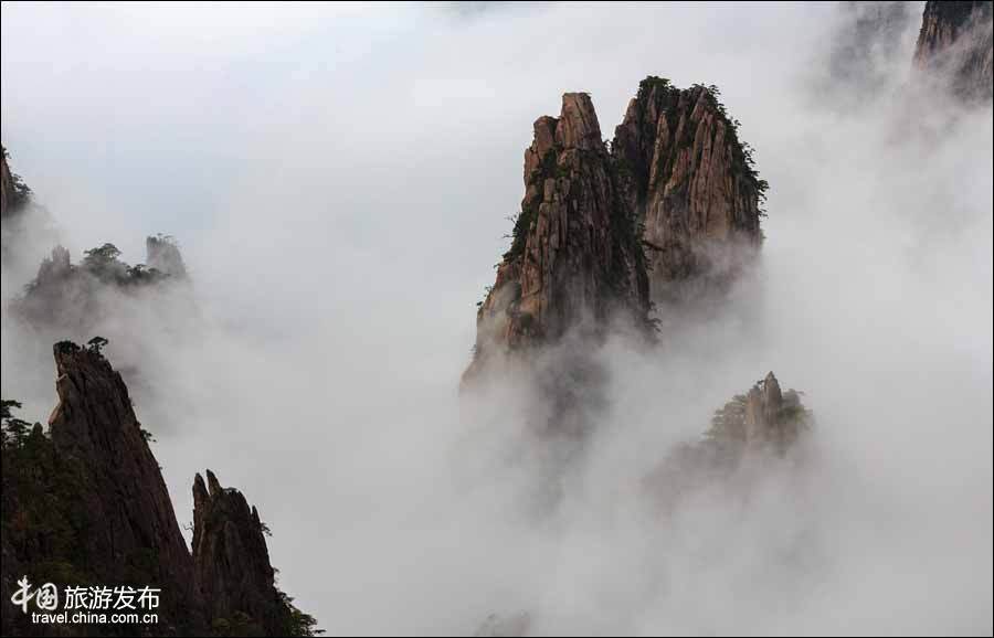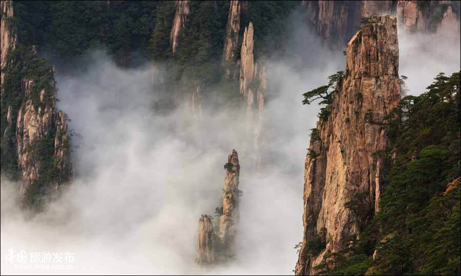 【點睛】“雨后黃山更奇絕”,這是清初詩壇盟主錢謙益在游覽黃山后興之所至。10月30日,綿綿的秋雨過后,黃山西海景區(qū)云霧彌漫,樹林中騰起的層層云霧,環(huán)繞著青山黛色,飄渺在山峰間,時而云遮霧罩,時而青煙縹緲,時而四方慢云,時而暗流涌動,峰在云中、石在樹中、人在畫中的畫卷緩緩鋪展。