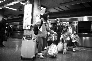 北京西站地鐵站內(nèi),一家人即將踏上返鄉(xiāng)的旅程。