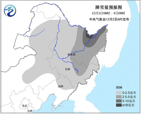 昨天,東北地區(qū)的降雪達到本輪降雪過程的鼎盛階段。監(jiān)測顯示,12月2日8時至3日6時,黑龍江、吉林東部和內(nèi)蒙古東北部等地降雪2~8毫米,黑龍江東部10~18毫米,虎林和饒河局地達21毫米。