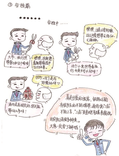 “不僅從售票、檢票方面,還有文明出行,都讓大家通過漫畫的形式掌握。”陸瑤陸陸續(xù)續(xù)地畫了幾百幅漫畫,并通過她單位的官方對(duì)外發(fā)布。很多看過漫畫的旅客也對(duì)這種方式十分認(rèn)可。“比較生動(dòng),小孩子看了也會(huì)記得住。”一位旅客說。下一步,這些漫畫將制作成手冊(cè)在春運(yùn)開始后分發(fā)給前來乘車的旅客們,以方便他們的出行。綜合