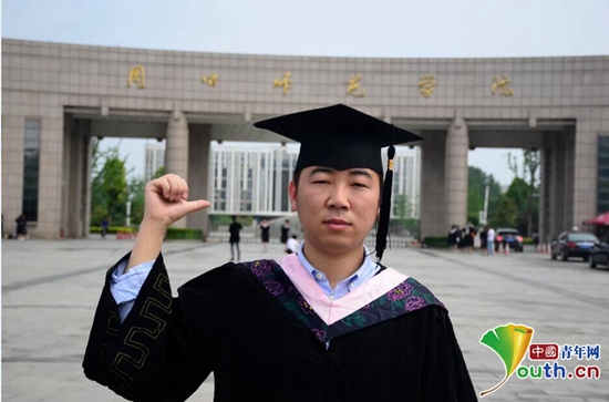 圖為周口師范學(xué)院畢業(yè)生劉凱在校門口留念。本人供圖