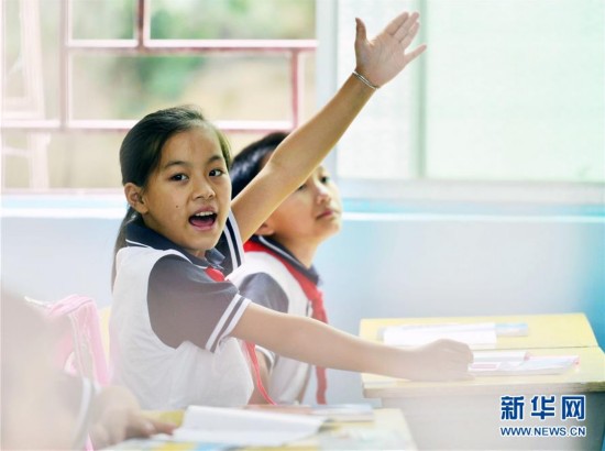 8月31日,貴州省劍河縣城關(guān)第二小學(xué)一名二年級(jí)學(xué)生在新學(xué)期課堂上舉手回答問(wèn)題。新學(xué)期,每個(gè)學(xué)生感受都不同,有初來(lái)乍到的新奇,有早起上課的困倦,有與小伙伴重逢的喜悅,也有與家人短暫離別的不舍……開(kāi)學(xué)的表情,豐富多彩。新華社發(fā)(楊文斌攝)