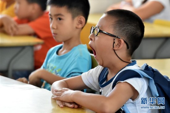 8月30日,江蘇省揚(yáng)州市花園小學(xué)一名一年級(jí)新生坐在座位上打哈欠。新學(xué)期,每個(gè)學(xué)生感受都不同,有初來(lái)乍到的新奇,有早起上課的困倦,有與小伙伴重逢的喜悅,也有與家人短暫離別的不舍……開(kāi)學(xué)的表情,豐富多彩。新華社發(fā)(莊文斌攝)