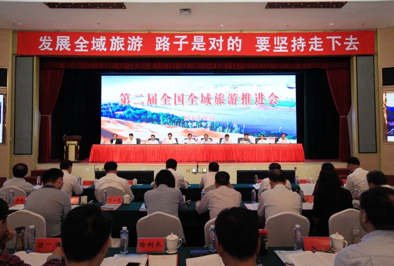 9月10日,第二屆全國全域旅游推進會在寧夏中衛(wèi)市舉行。國家旅游局局長李金早、寧夏回族自治區(qū)書記李建華出席會議并講話。河北省委副書記、省旅游工作領導小組組長趙勇、浙江省副省長梁黎明、四川省副省長楊洪波、貴州省副省長黃家培、中國旅游集團董事長張學武等介紹經驗,國家旅游局副局長李世宏主持會議。