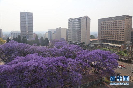 哈拉雷:非洲“花城”藍(lán)花楹盛開(組圖)
