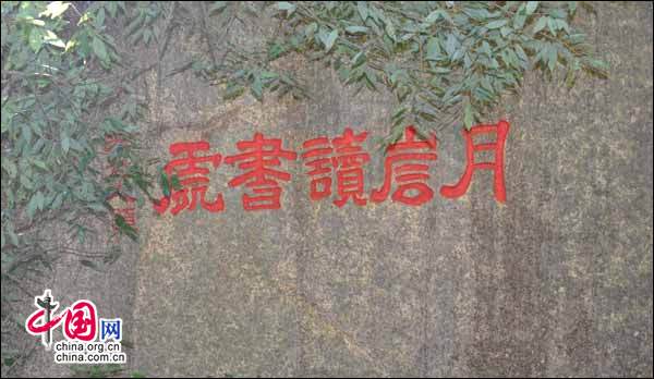 環(huán)顧四周,戴先生的《梅屋》景致,生龍活虎。四周粗略走個(gè)通頭,遺憾的是巨石周圍長(zhǎng)滿植被,找不到可以爬上梅屋屋頂(刻有“釣月臺(tái)”的石塊)的路影,也就不能高空領(lǐng)略先人們凈空坐懷“釣月臺(tái)”上撫琴攬?jiān)拢瑧n而不傷的情懷。