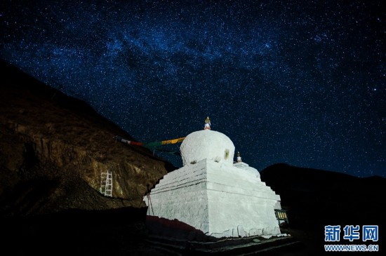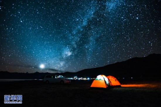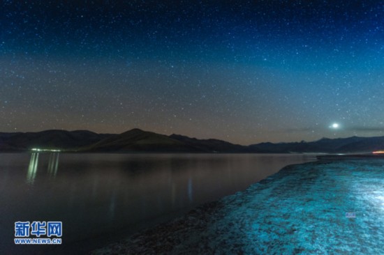 11月22日晚羊湖的星空。新華網(wǎng)達(dá)娃攝