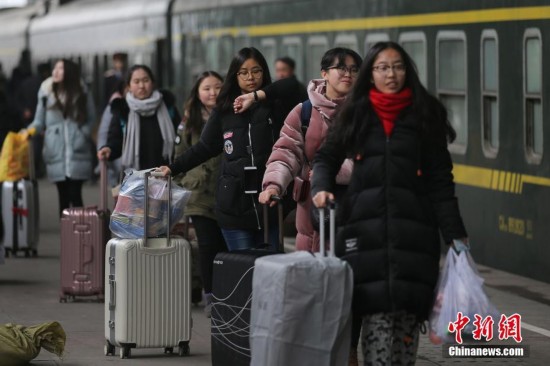 1月10日,大批旅客在南京火車站乘坐火車出行。春運臨近,大批外來務(wù)工人員和高校提前放假的學(xué)生為避開乘車高峰開始提前返鄉(xiāng),火車站、汽車站等交通窗口客流先涌。據(jù)悉,今年的春運將從1月13號起到2月21號,共40天,全國鐵路預(yù)計發(fā)送旅客3.56億人次。 中新社記者 泱波 攝