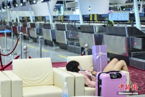 資料圖:8月1日,深圳機(jī)場(chǎng),一名旅客因航班取消在出發(fā)大廳內(nèi)休息。中新社記者 陳驥旻 攝