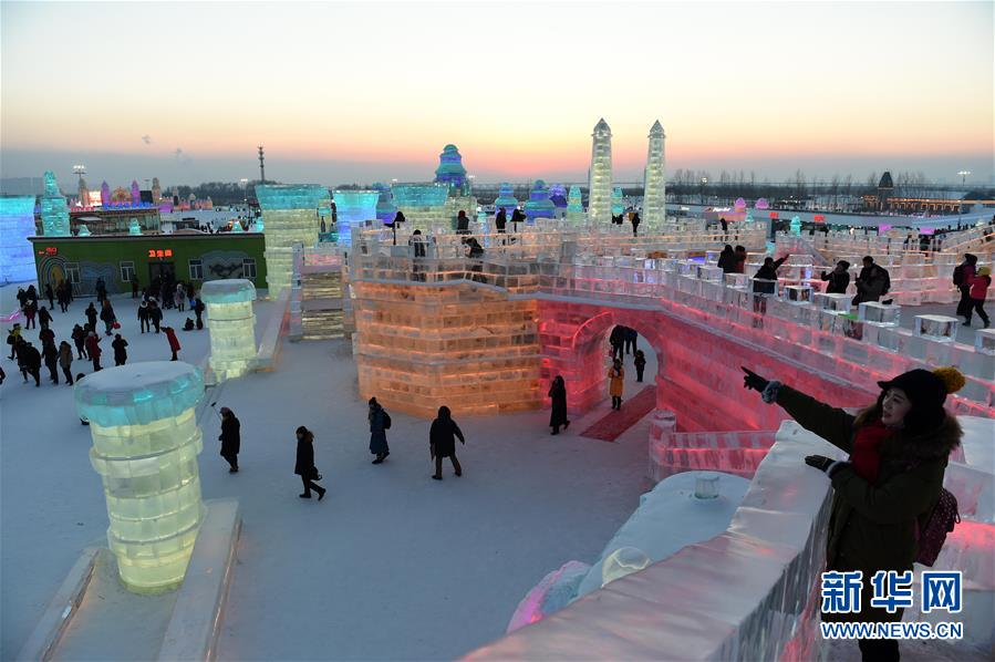2月7日,游客在哈爾濱冰雪大世界園區(qū)游玩拍照。春節(jié)長假后,哈爾濱冰雪大世界依舊游人如織,流光溢彩的冰建筑、巧奪天工的冰雕作品和百玩不厭的冰雪娛樂活動,讓天南海北的游客流連忘返。新華社記者 王建威攝 -