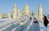 2月7日,游客在哈爾濱冰雪大世界園區(qū)玩冰滑梯。春節(jié)長假后,哈爾濱冰雪大世界依舊游人如織,流光溢彩的冰建筑、巧奪天工的冰雕作品和百玩不厭的冰雪娛樂活動,讓天南海北的游客流連忘返。新華社記者 王建威攝
