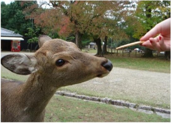 日本奈良公園的鹿深受游客歡迎,游客總是給它們慷慨喂食,然而不少鹿因吃了外來食物而生病。園方計劃修訂園區(qū)條例,禁止游客用外來食物喂鹿,只可喂食園內(nèi)售賣的鹿餅,違例者將被罰款。