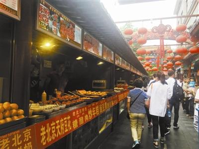 位于王府井的小吃一條街上出現(xiàn)了部分“冒名”的老北京小吃 攝影/本報記者 孔令晗