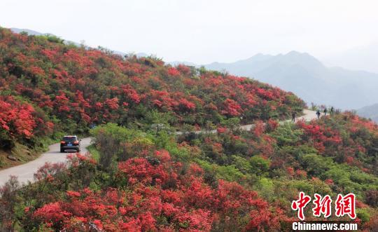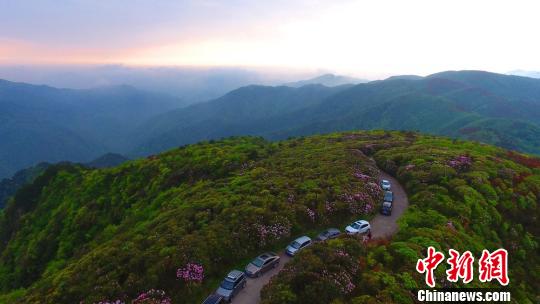 5月7日,湖南省永州市陽明山國家森林公園內(nèi)的近10萬畝野生杜鵑花陸續(xù)綻放,吸引游客紛至沓來。據(jù)了解,永州市陽明山國家森林公園的杜鵑花共有28種,其中云錦杜鵑是當(dāng)?shù)靥厣贩N。何紅福 攝
