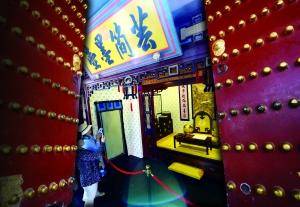 北京晨報(bào)記者注意到,景區(qū)內(nèi)還有不少屬于“仿膳”的物件。步入漪瀾堂,抬頭可見巨大的金碧輝煌的“二龍戲珠”藻井。據(jù)工作人員介紹,這里曾是仿膳的營(yíng)業(yè)大廳,可以放下14張大桌,每桌坐10人。“這個(gè)藻井就是后建的,包括這些鑲嵌在柱子上的盤金龍、貼在房頂四周的‘清宮舊畫’都是后建的、后貼的,今后全部都要拆掉,恢復(fù)漪瀾堂最早的樣貌!惫ぷ魅藛T如是說(shuō)。