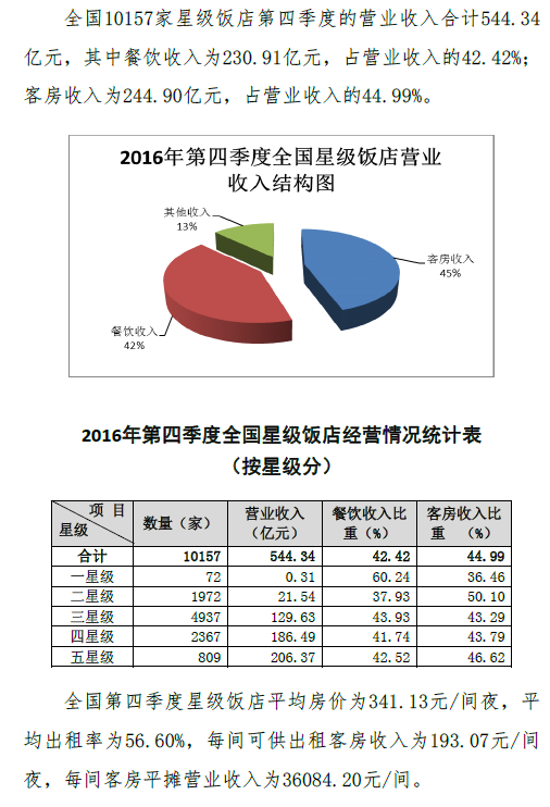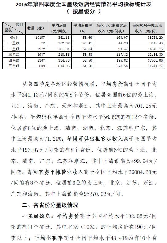 央廣網北京5月19日消息 國家旅游局官網發(fā)布2016第四季度全國星級飯店統(tǒng)計公報,具體數(shù)據(jù)如下: