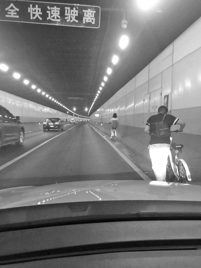 “隧道里,竟然有兩人在騎單車!”前天晚上,長江隧道管理方通過監(jiān)控發(fā)現,在武昌往漢口方向,一男一女兩個年輕人正騎著單車從沙湖大橋下坡后直接進入長江隧道。為避免意外發(fā)生,隧道管理方出動巡線車掩護,耗時23分鐘,將兩人送出隧道天津路出口。據統(tǒng)計,共享單車火爆后,每月都有六七起騎共享單車闖隧道的事情發(fā)生。武漢交警正制定制度,將把有“闖隧道”等行為的單車用戶拉進黑名單,取消其使用共享單車的資格。