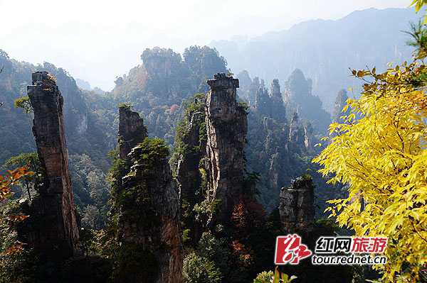 十月將盡,世界自然遺產(chǎn)地張家界武陵源風(fēng)景名勝區(qū)天子山、袁家界、黃石寨一帶深秋風(fēng)景異常迷人。