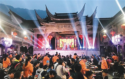 游客在臺(tái)州欣賞戲劇演出。