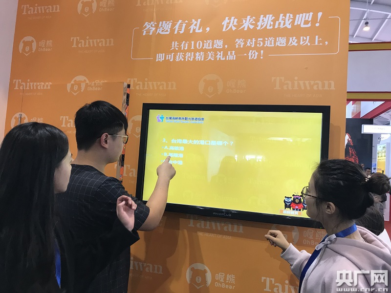 今年的“臺(tái)灣主題館” 特設(shè)與觀展民眾互動(dòng)的“臺(tái)灣旅游電子信息互動(dòng)區(qū)”以及和 “喔熊組長”拍照專區(qū),顯得尤為活潑和接地氣。館內(nèi)的布置則融入“2018海灣之旅”、臺(tái)灣燈會(huì)、澎湖風(fēng)光、自行車騎行、浪漫臺(tái)三線等吸晴旅游元素,熱力向參觀民眾推介臺(tái)灣多元觀光資源。