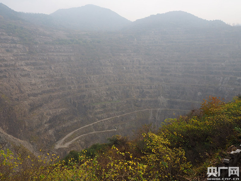 亞洲第一采坑,坑內(nèi)被稱(chēng)為“掌子面”的采礦點(diǎn),留下了一道道如同巨大階梯的幾何形斷面,使“天坑”如古羅馬的圓形劇場(chǎng)。(央廣網(wǎng)記者何微攝) -