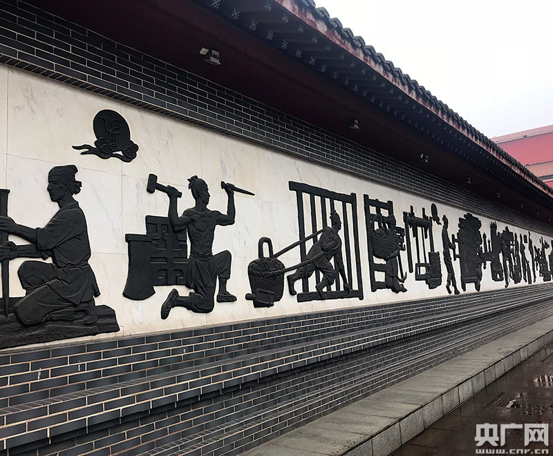 鋼之源浮雕,采用青銅鑄造,以“鋼鐵是怎樣煉成”為主題,完整的展示鋼鐵煉制過(guò)程。(央廣網(wǎng)記者何微攝) -