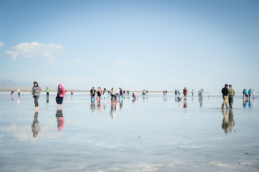 游客在茶卡鹽湖游覽(2015年8月22日攝)。 從幾萬游客到超過270萬人次,被譽為中國“天空之鏡”的茶卡鹽湖幾年間變身網(wǎng)紅景區(qū),已成為游客到青海旅游的必到景點之一。作為一個工業(yè)鹽湖,茶卡鹽湖何以成為熱門景區(qū)?旅游興起對周邊群眾的帶動效益如何?景區(qū)服務(wù)質(zhì)量如何同步提升?新華社記者進行了實地探訪。新華社記者 吳剛 攝 -