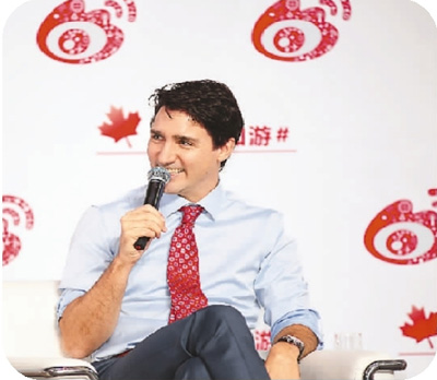 加拿大總理賈斯廷·特魯多向中國(guó)游客介紹加拿大。