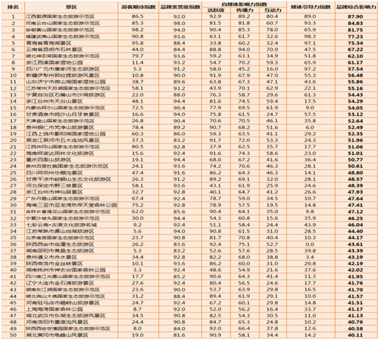 圖 2017年度中國生態(tài)旅游示范區(qū)排行榜(Top50)