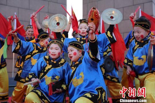 圖為現(xiàn)場溫嶺大奏鼓表演 梅柏林 攝