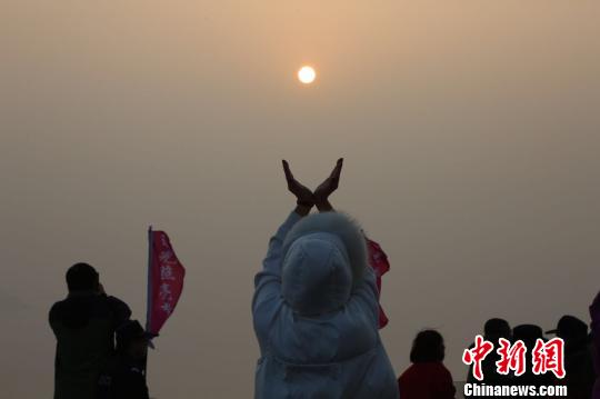 中新網臺州1月1日電 (孔雁婷)“看,太陽出來了!”1月1日早上6時多,新一年的太陽從浙江溫嶺的海平面上冉冉升起,數(shù)萬名游客在寒風中長時間的等待后瞬間沸騰,大家齊刷刷地向著這初升的太陽許下了新年的希望。