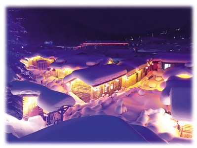 一入雪鄉(xiāng),獨(dú)具特色的房子便映入眼簾。層層疊疊的白雪從房頂順著屋檐一直垂到地上;潔白如玉的雪地上冒出一朵朵矮矮胖胖的雪蘑菇,如同天上的云朵掉落人間,輕盈可愛。雪鄉(xiāng)天黑得很早,晚上四五點(diǎn)時(shí)家家戶戶便點(diǎn)亮高掛的紅燈籠,整個(gè)村子像被施了魔法,變身為童話王國(guó),眼前的世界滿足了兒時(shí)我們對(duì)童話世界的所有幻想。三個(gè)小伙伴激動(dòng)地除了“哇”,什么都說(shuō)不出,大自然的鬼斧神工無(wú)需半點(diǎn)修飾就已美得不可方物。