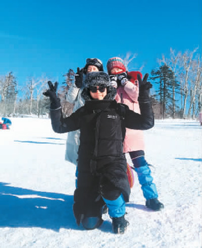 為了節(jié)省時(shí)間和精力,下山時(shí)我們選擇了“天下第一漂”。長(zhǎng)約5公里的自然雪道從山頂一貫到底,看著就叫人躍躍欲試。教練簡(jiǎn)單地指導(dǎo)之后從背后一推,人一下就滑了出去。揚(yáng)起的雪粒打在臉上有些疼,逐漸加快的滑行速度叫人忍不住驚叫。這種感覺并沒有持續(xù)多久,由于雪道不夠陡,我們都停在了半路。這下可犯了難,三個(gè)人只能慢慢摸索技巧,一路上翻翻停停,到最后一小程才暢快地直沖到底。