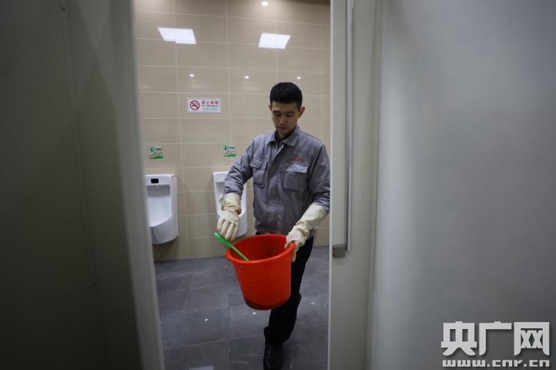 2017年7月,沈陽北站抽調(diào)部分客運員轉(zhuǎn)崗成為保潔員,負責(zé)車站候車室公共廁所的衛(wèi)生保潔工作。27歲的客運員劉浩主動報名,成為保潔隊伍中的一員,成為候車大廳A14男衛(wèi)生間守廁人。