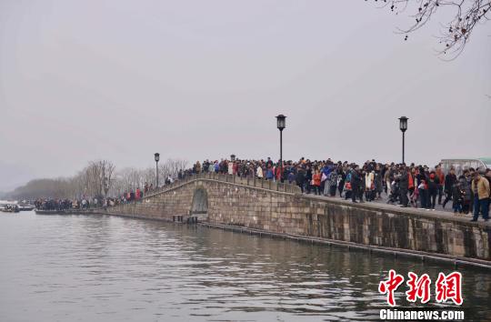 原標(biāo)題:春節(jié)假期百萬游客涌入杭州西湖 “人海游湖”成新景觀