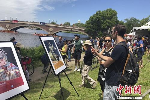當?shù)貢r間6月10日,作為第39屆波士頓龍舟節(jié)支持項目之一,中國旅游風情圖片展在美國馬薩諸塞州劍橋市舉辦。此次圖片展由中國駐紐約旅游辦事處主辦,展出了30余幅具有代表性的中國旅游風情圖,吸引眾多師生、市民駐足。(中國駐紐約旅游辦事處供圖)