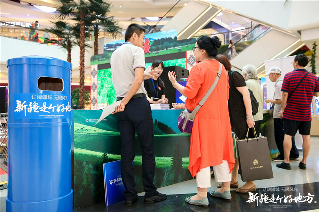 推介會當天,新疆還在北京愛琴海購物中心同步舉行了旅游路演活動,活動現(xiàn)場不僅有精彩的新疆歌舞表演,還設(shè)置了有趣的游戲互動環(huán)節(jié)。在新疆各地州市的推介區(qū),游客可獲取新疆旅游宣傳冊,充分了解到新疆各地特色旅游資源。琳瑯滿目的新疆特色旅游商品展位吸引了民眾的目光,和田的大棗、伊犁的黑蜂蜂蜜、精河的枸杞等原生態(tài)旅游商品深受民眾喜愛,F(xiàn)場設(shè)置的互動郵筒更是加強了游客的體驗感,游客在展銷區(qū)不僅深入了解了新疆特色旅游產(chǎn)品,還能購買到新疆特色商品。