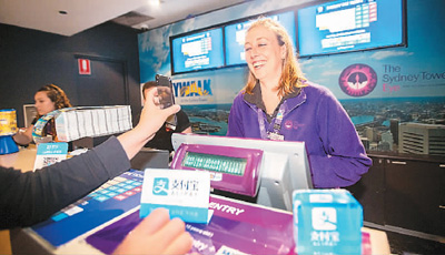 中國游客在澳大利亞悉尼的景點(diǎn)使用支付寶購買門票。