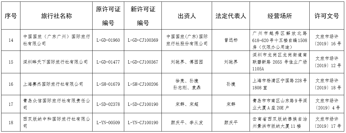 中國網5月31日訊 近日,文化和旅游部公布了新一批獲得出境游業(yè)務經營許可的旅行社名單,此次共18家旅行社入選。